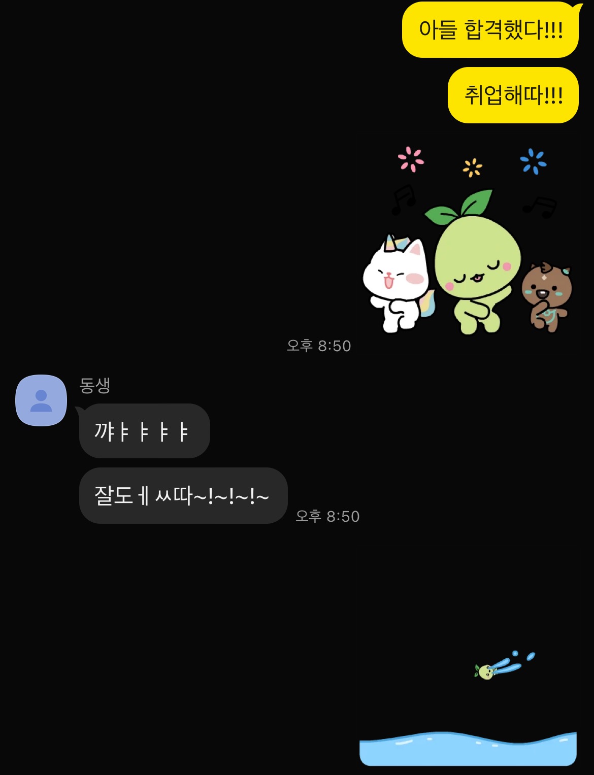 1월부터 오전과 점심에는 면접 준비와 공부를 하고, 저녁에는 다이소 물류 아르바이트를 병행하던 힘든 시기였다. 그러던 어느 날 퇴근길 버스 안에서 메일이 도착했다. 합격 소식을 확인한 순간, 가장 먼저 나를 믿고 응원해 준 가족들과 여자친구에게 소식을 전했다.