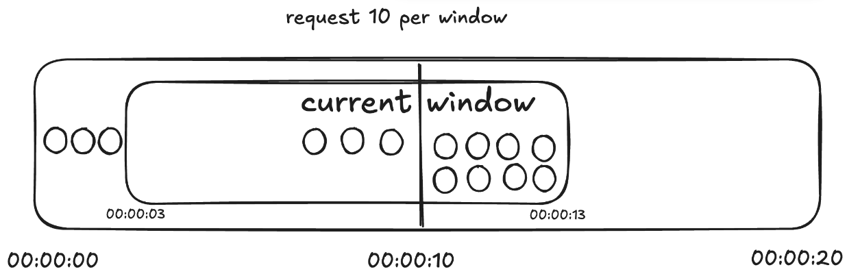 - 요청이 들어오면 현재 시간대에서 이전 시간대의 요청과 현재 시간대의 요청 비율을 계산하여 요청 수를 계산한다.