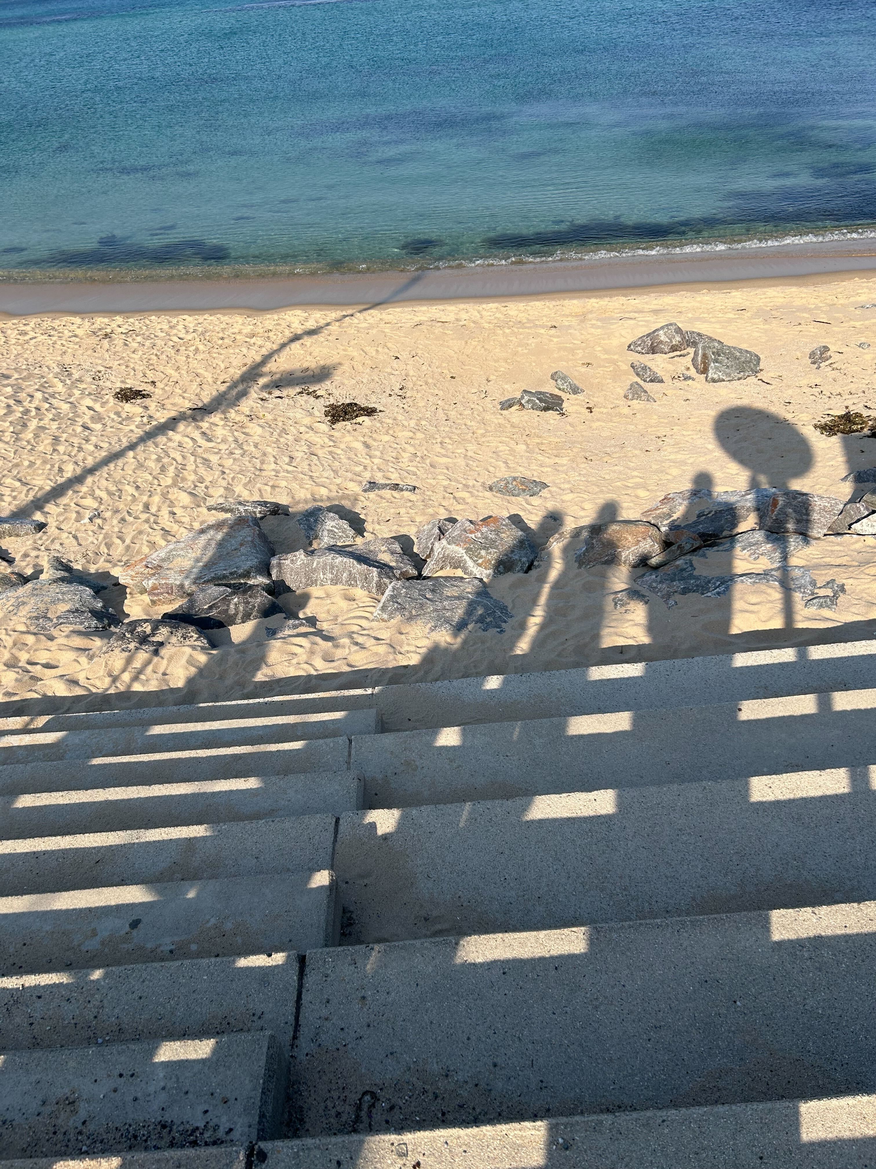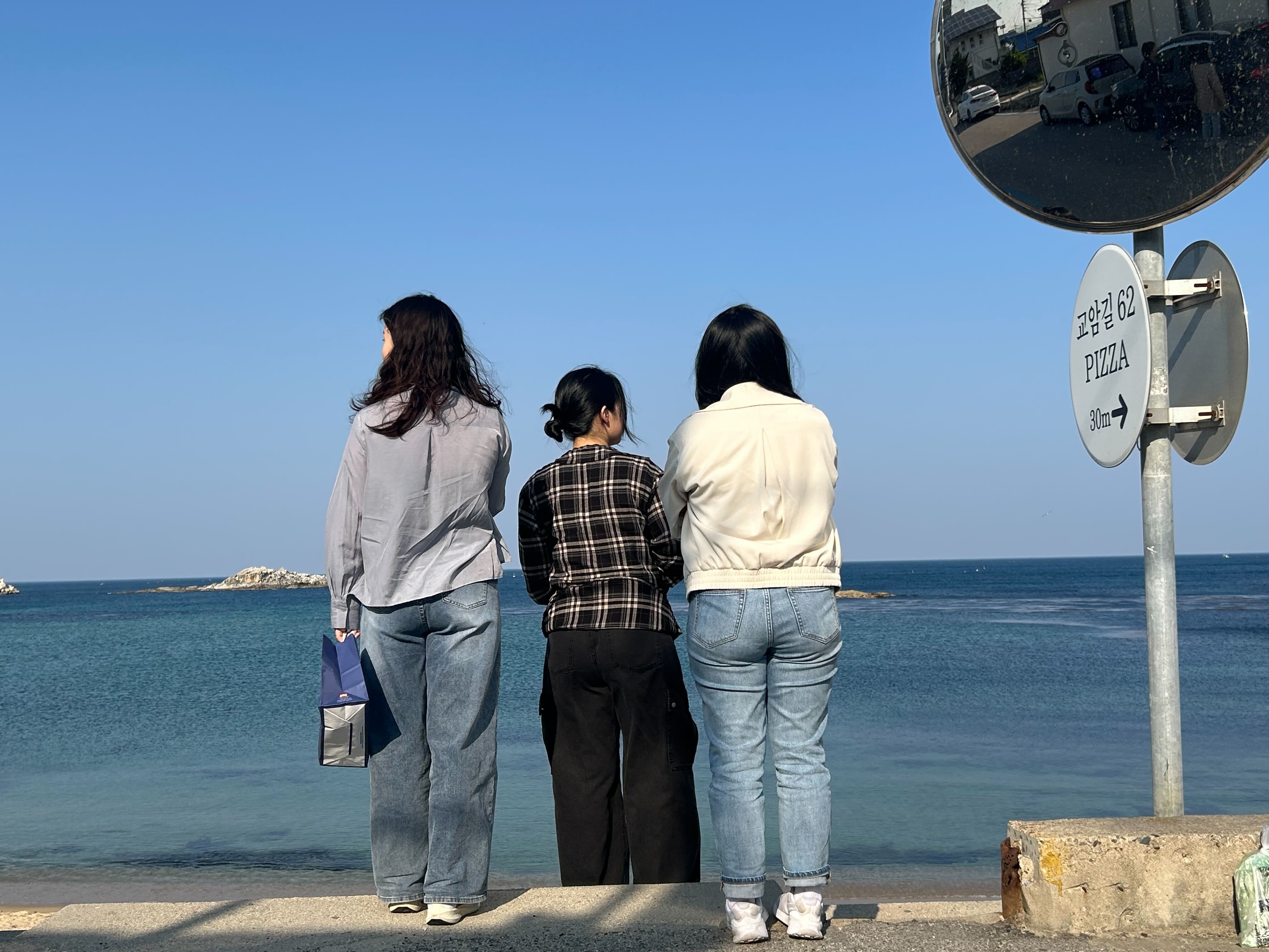 같이 오신 지인분들도 시간이 지나면서 바다를 보러 나오셨고, 같이 바다를 보며 얘기도 나누고 사진도 찍어드렸다! 숙소에 올라가 커피를 마시며 책을 읽는데, 지인분들께서 슬슬 바다에 모이는 모습을 발코니에서 구경할 수 있었다. 숙소의 위치가 높다 보니 위에서 바라보는 그 광경은 모래사장에서 마치 오리 가족이 걸어가는 것처럼 보였다. ‘귀염뽀짝’이라는 단어가 딱 떠올랐다.