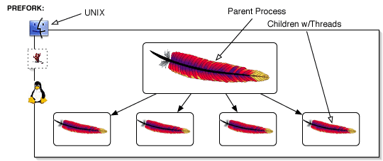 Apache는 클라이언트 요청당 하나의 스레드가 처리하는 구조입니다. 하지만 요청이 들어올 때마다 프로세스를 생성하는 것은 너무 많은 자원을 소모하게 됩니다. 따라서 Apache는 프로세스를 미리 생성해놓는 PreFork 방식을 택하여 그 비용을 줄였습니다.