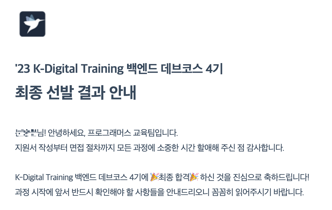 5월 21일 월요일 오후 8시 정각에 바로 합격 발표가 났다! 합격일지 너무 긴장이 되어서 정각에 바로 확인하지는 않았다. 혹시나 또 모르기때문에..! 22일날 CS 스터디가 있어서 공부를 하다가 긴장을 하며 오후 8시 4분쯤 메일을 확인했다.