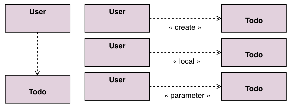 다만 Dependency 관계는 계속 유지되는 방식이 아니고 메서드의 호출이 시작될 때 관계가 이어졌다가 메서드의 호출이 끝나면 관계가 끝나는 형식이다.