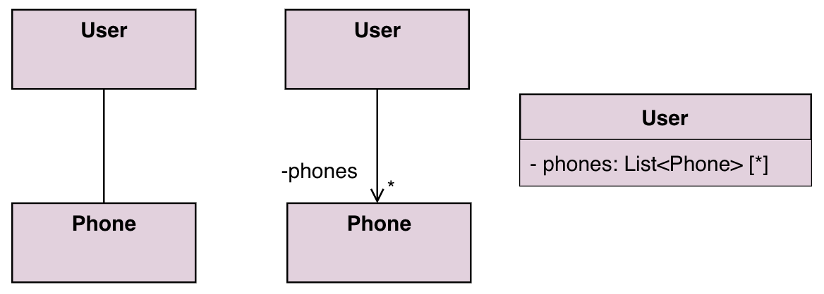 -phones는 연관 객체에서의 역할명(Role Name)을 나타내고 - 는 기존과 동일하게 접근 제어자를 의미한다.