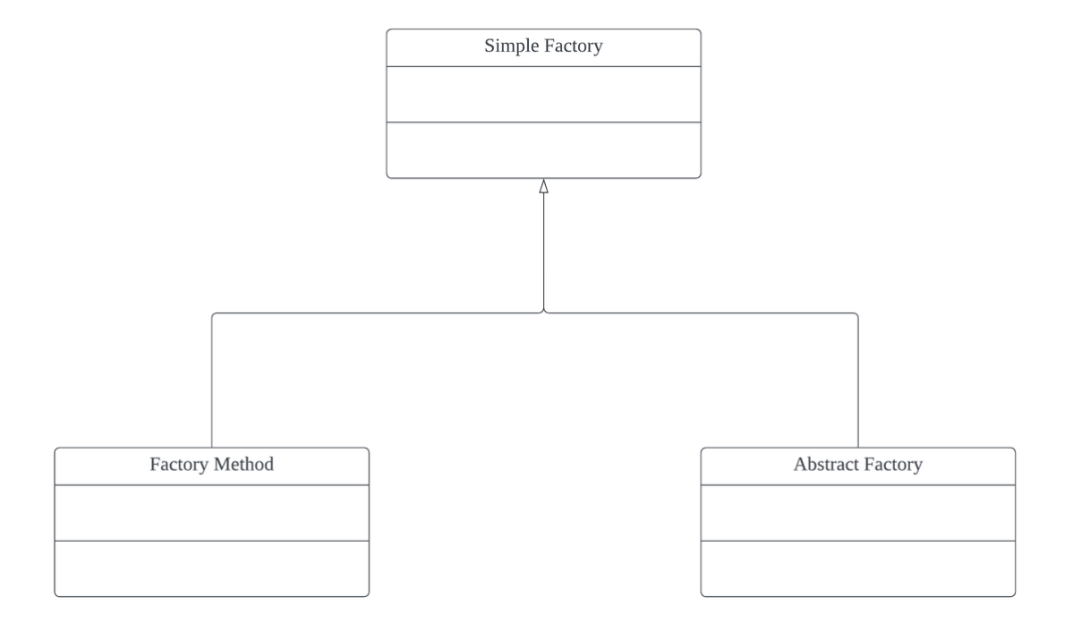 기본적으로 간단한 팩토리는 패턴으로 사용하지 않고 관용구로 사용한다고 하는데, 팩토리 메서드 패턴과 추상 팩토리 패턴의 기본적인 틀은 Simple Factory를 따라가는 것 같아서 위와 같이 표현을 했다.