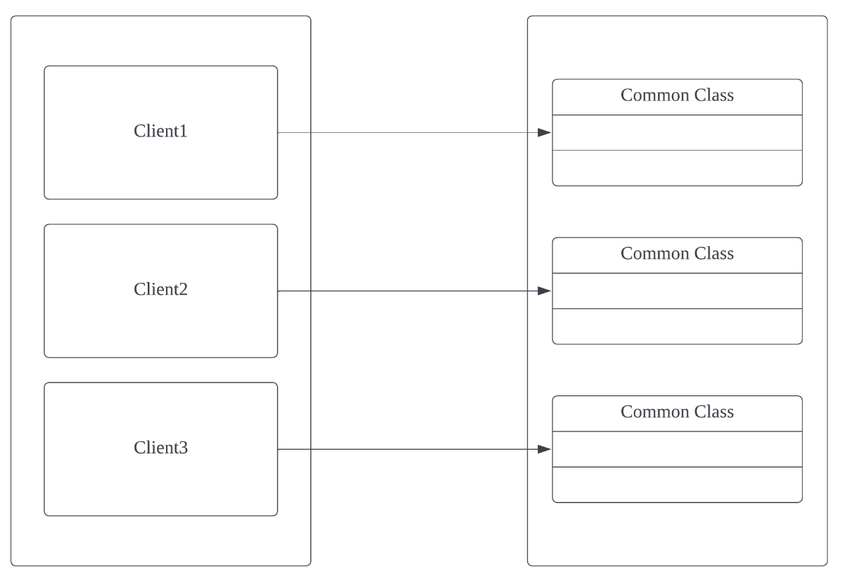 위 처럼 각 각 독립된 기능을 수행하는 클래스를 클라이언트 각각이 클래스를 생성해서 사용하게 되면, 메모리 누수가 발생하게 됩니다. 물론 새롭게 생성된 객체들이 GC 를 통해서 자동으로 비워지기는 할 테지만 잦은 GC는 Stop the World 를 발생시켜 프로그램 사용에 있어서 느려짐을 겪을 수 있습니다.