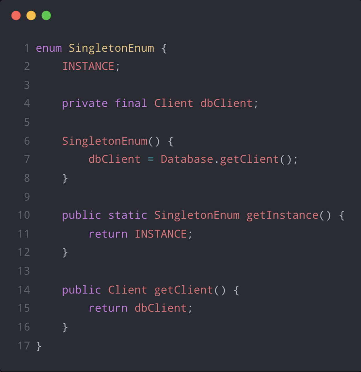 - enum은 애초에 멤버를 만들 때 private 형태이고, 바로 초기화를 하기 때문에 thread safe함.